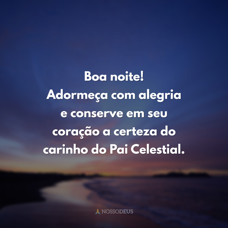 Boa noite! Adormeça com alegria e conserve em seu coração a certeza do carinho do Pai Celestial.