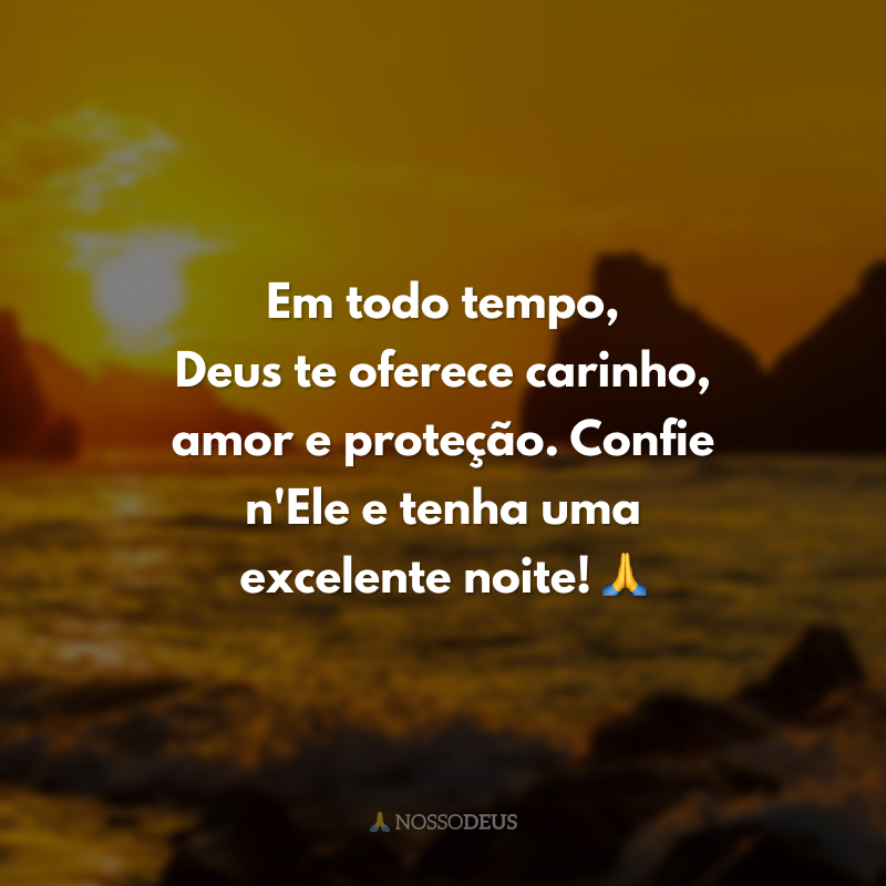 Em todo tempo, Deus te oferece carinho, amor e proteção. Confie n'Ele e tenha uma excelente noite! 🙏