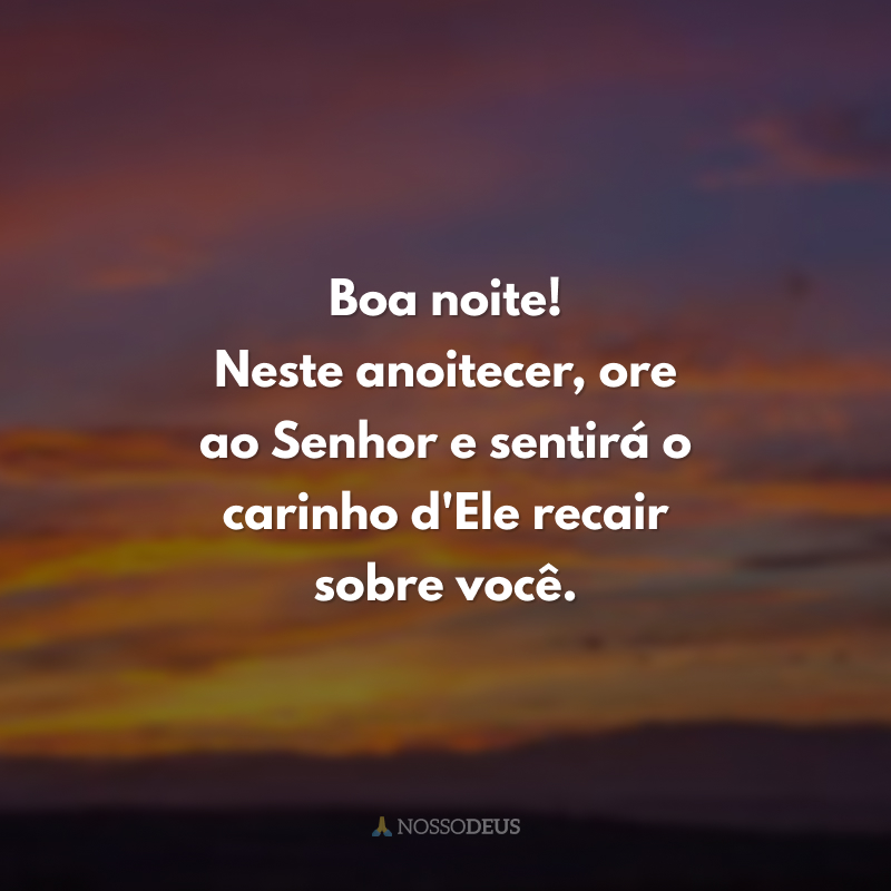 Boa noite! Neste anoitecer, ore ao Senhor e sentirá o carinho d'Ele recair sobre você.