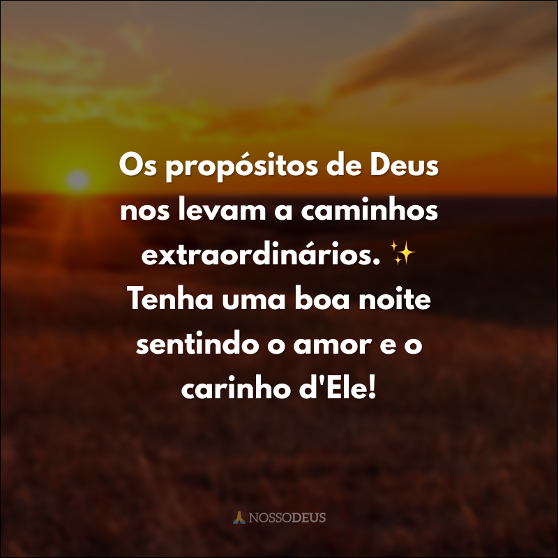 Os propósitos de Deus nos levam a caminhos extraordinários. ✨ Tenha uma boa noite sentindo o amor e o carinho d'Ele!