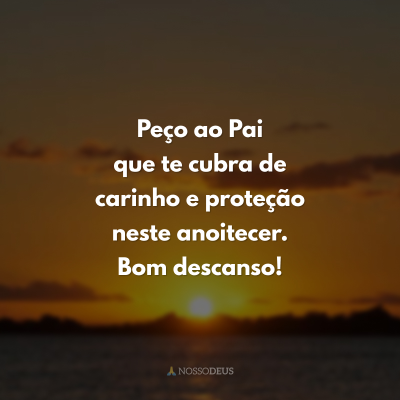 Peço ao Pai que te cubra de carinho e proteção neste anoitecer. Bom descanso!