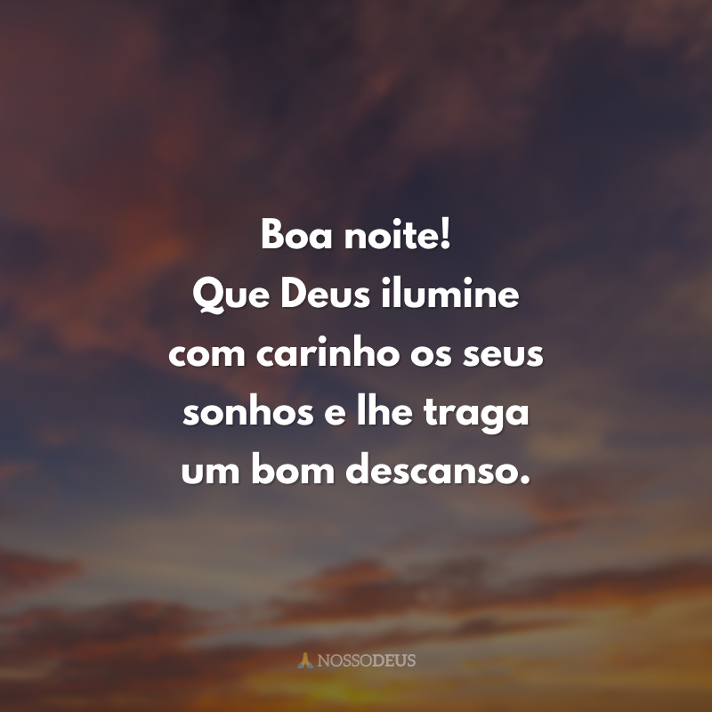 Boa noite! Que Deus ilumine com carinho os seus sonhos e lhe traga um bom descanso.