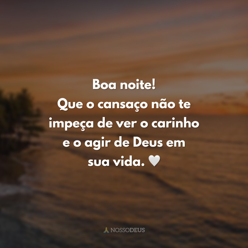Boa noite! Que o cansaço não te impeça de ver o carinho e o agir de Deus em sua vida. 🤍