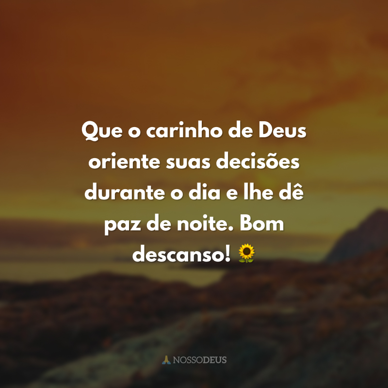 Que o carinho de Deus oriente suas decisões durante o dia e lhe dê paz de noite. Bom descanso! 🌻