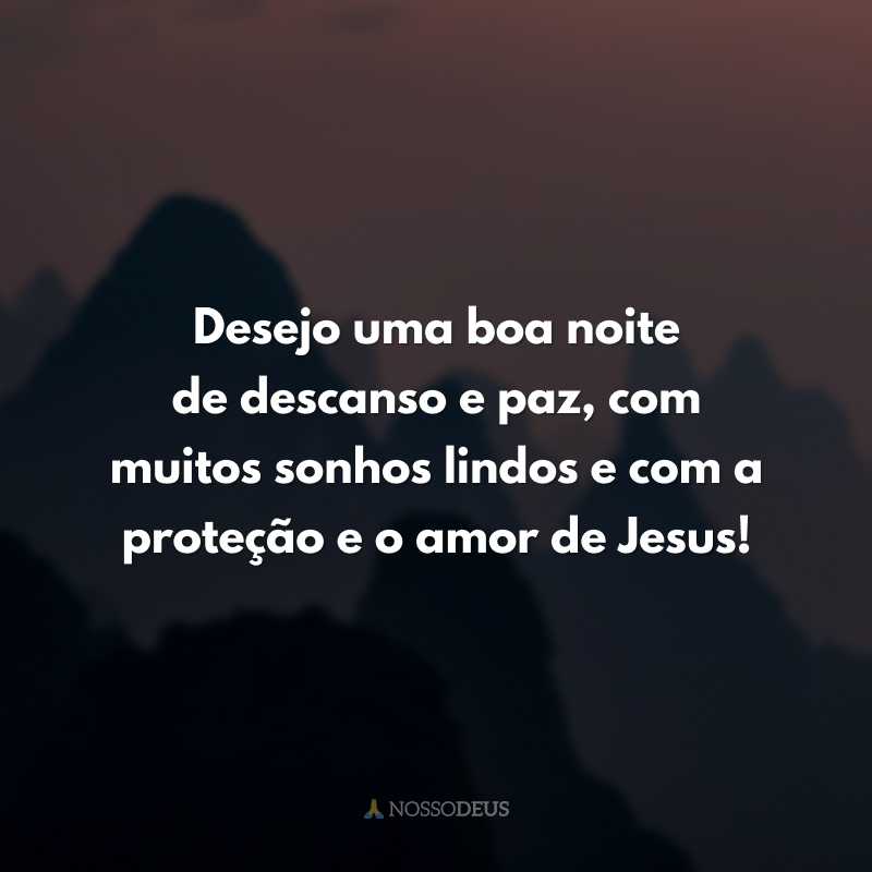 Desejo uma boa noite de descanso e paz, com muitos sonhos lindos e com a proteção e o amor de Jesus!