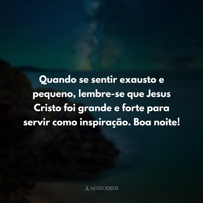 Quando se sentir exausto e pequeno, lembre-se que Jesus Cristo foi grande e forte para servir como inspiração. Boa noite!