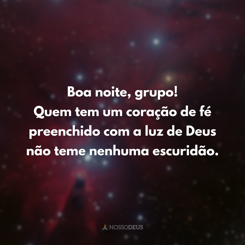 Boa noite, grupo! Quem tem um coração de fé preenchido com a luz de Deus não teme nenhuma escuridão.
