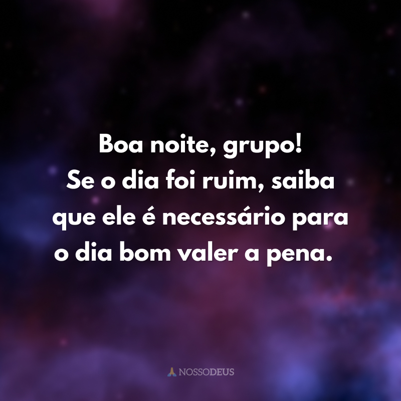 Boa noite, grupo! Se o dia foi ruim, saiba que ele é necessário para o dia bom valer a pena.