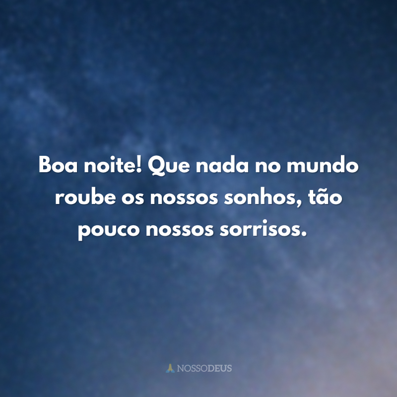 Boa noite! Que nada no mundo roube os nossos sonhos, tão pouco nossos sorrisos.