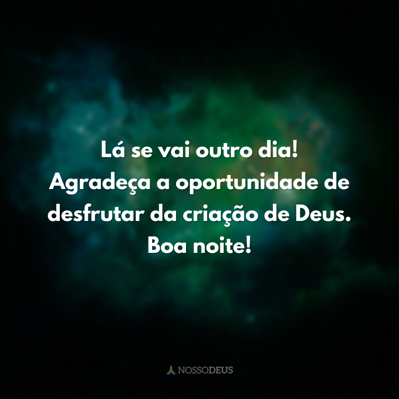 Lá se vai outro dia! Agradeça a oportunidade de desfrutar da criação de Deus. Boa noite!