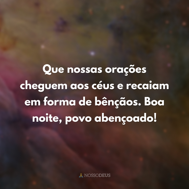 Que nossas orações cheguem aos céus e recaiam em forma de bênçãos. Boa noite, povo abençoado!