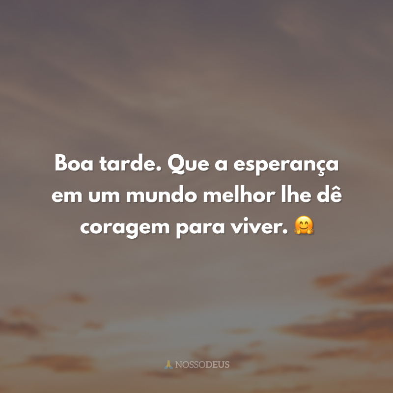 Boa tarde. Que a esperança em um mundo melhor lhe dê coragem para viver. 🤗
