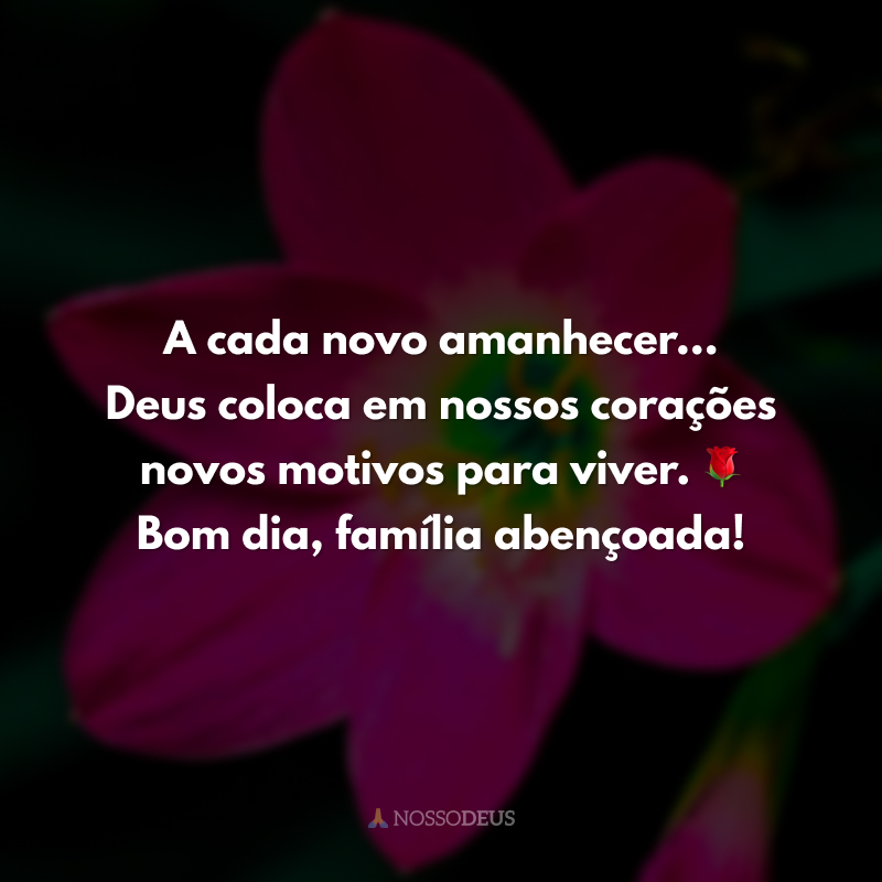 A cada novo amanhecer… Deus coloca em nossos corações novos motivos para viver. 🌹 Bom dia, família abençoada!