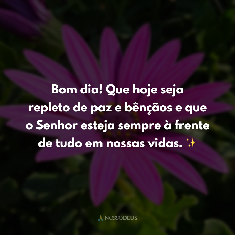 Bom dia! Que hoje seja repleto de paz e bênçãos e que o Senhor esteja sempre à frente de tudo em nossas vidas. ✨