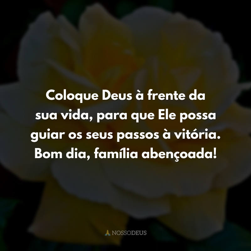 Coloque Deus à frente da sua vida, para que Ele possa guiar os seus passos à vitória. Bom dia, família abençoada!