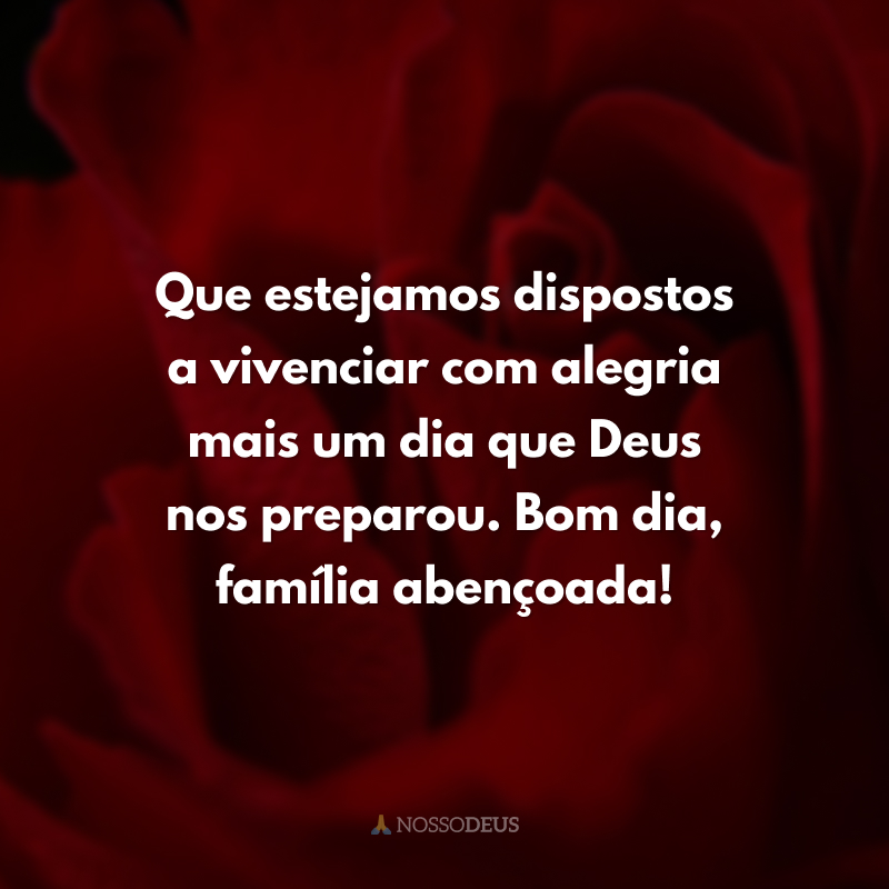 Que estejamos dispostos a vivenciar com alegria mais um dia que Deus nos preparou. Bom dia, família abençoada!