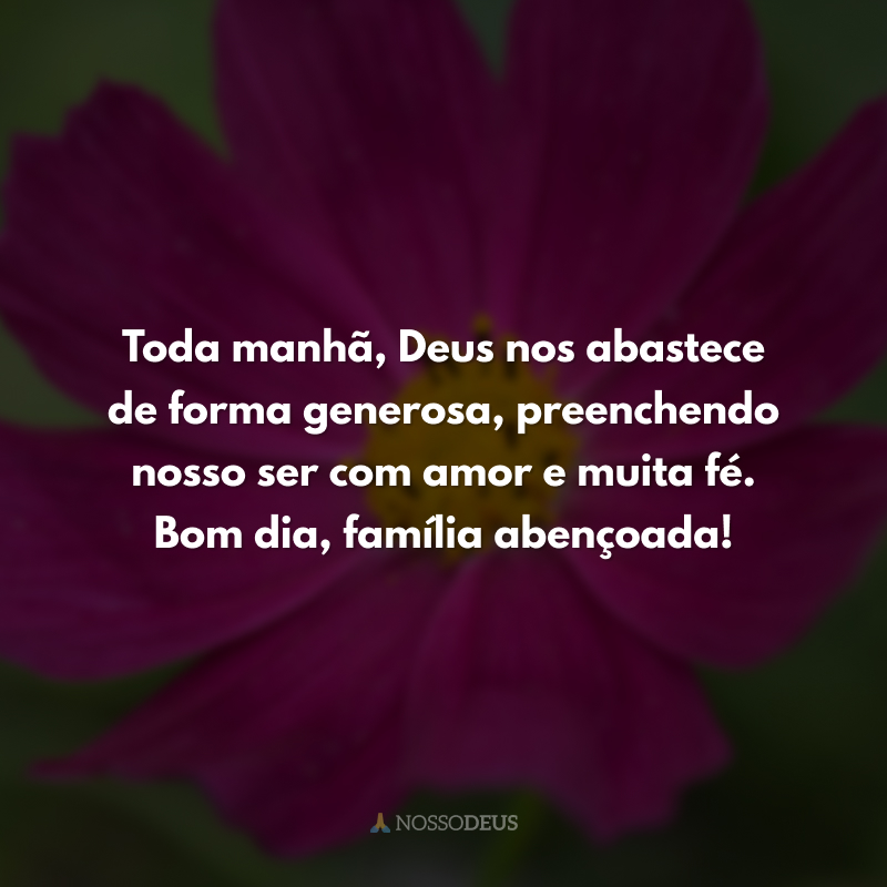 Toda manhã, Deus nos abastece de forma generosa, preenchendo nosso ser com amor e muita fé. Bom dia, família abençoada!