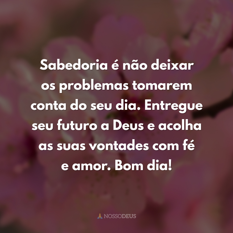 Sabedoria é não deixar os problemas tomarem conta do seu dia. Entregue seu futuro a Deus e acolha as suas vontades com fé e amor. Bom dia!