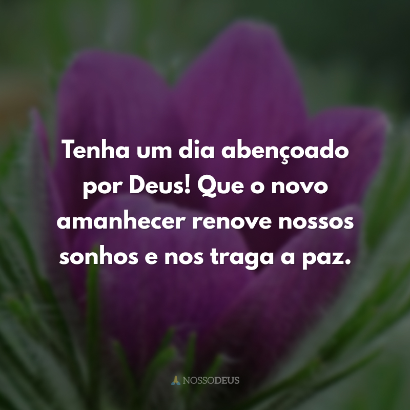 Tenha um dia abençoado por Deus! Que o novo amanhecer renove nossos sonhos e nos traga a paz.