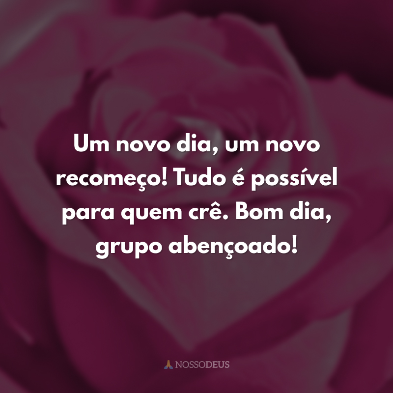Um novo dia, um novo recomeço! Tudo é possível para quem crê. Bom dia, grupo abençoado!