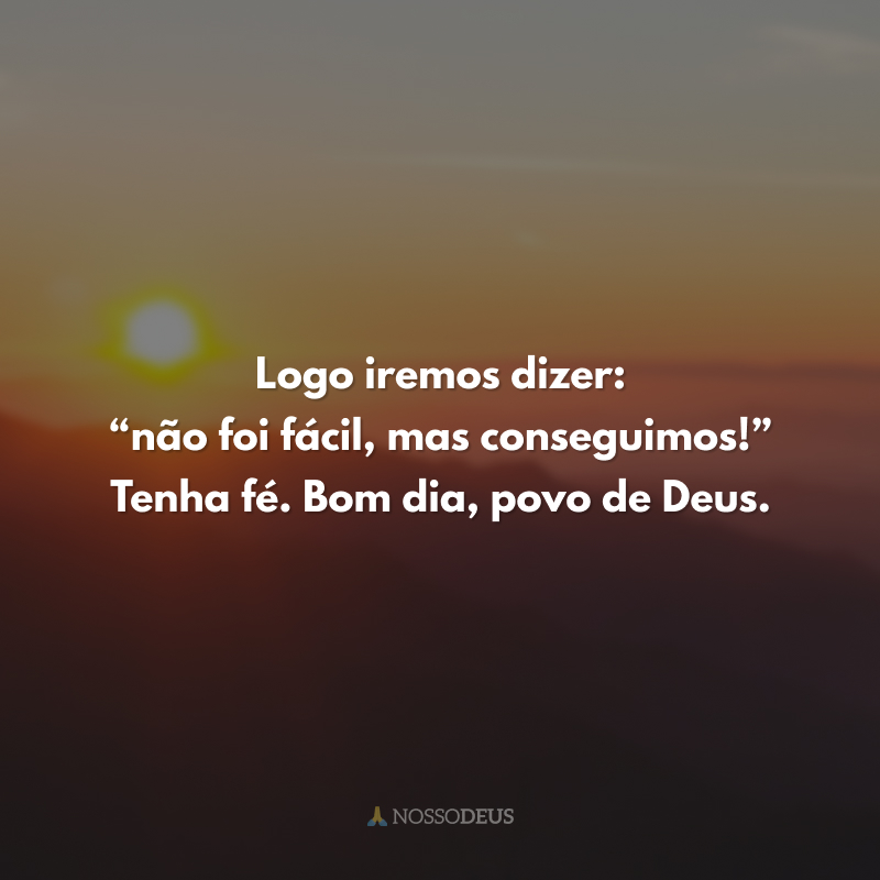 Logo iremos dizer: “não foi fácil, mas conseguimos!” Tenha fé. Bom dia, povo de Deus.