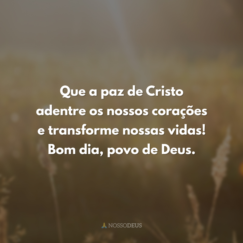 Que a paz de Cristo adentre os nossos corações e transforme nossas vidas! Bom dia, povo de Deus.