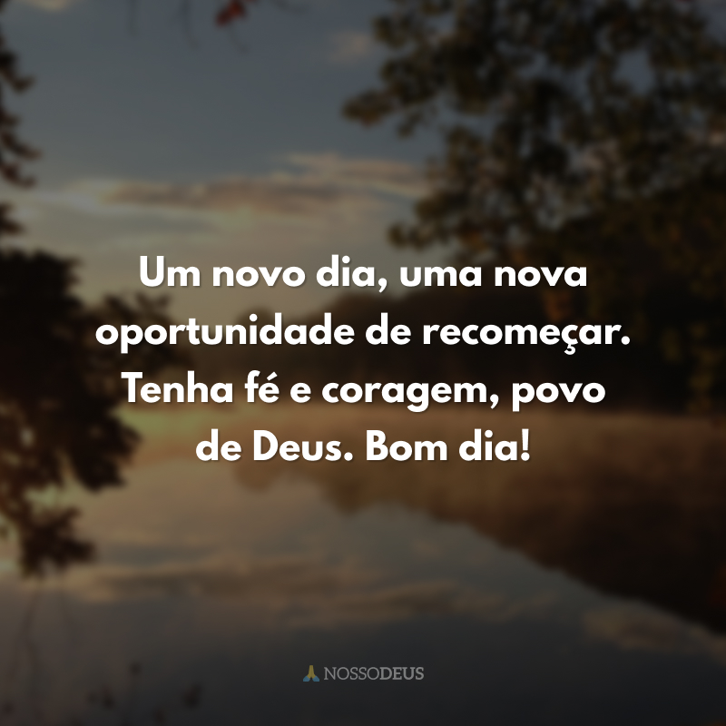 Um novo dia, uma nova oportunidade de recomeçar. Tenha fé e coragem, povo de Deus. Bom dia!