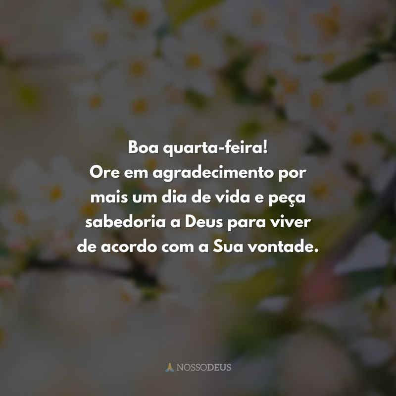 Boa quarta-feira! Ore em agradecimento por mais um dia de vida e peça sabedoria a Deus para viver de acordo com a Sua vontade.