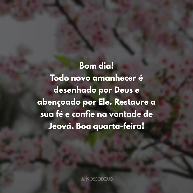 Bom dia! Todo novo amanhecer é desenhado por Deus e abençoado por Ele. Restaure a sua fé e confie na vontade de Jeová. Boa quarta-feira!