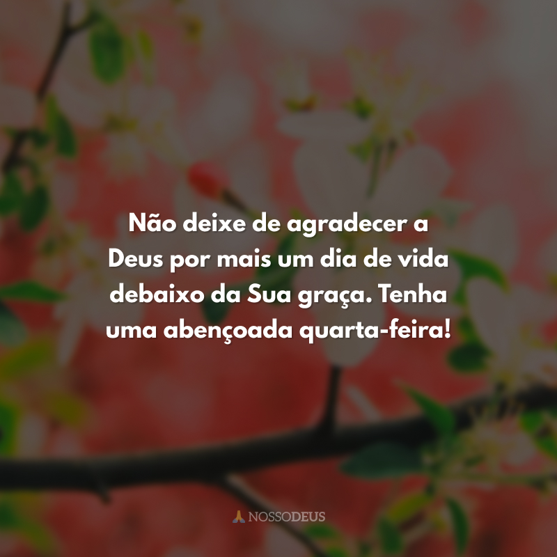Não deixe de agradecer a Deus por mais um dia de vida debaixo da Sua graça. Tenha uma abençoada quarta-feira!