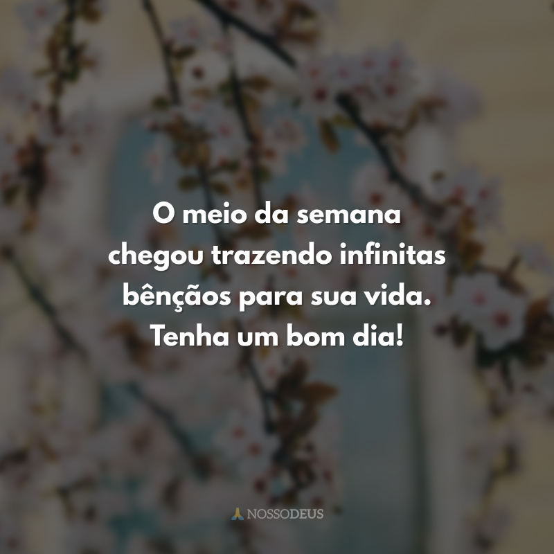 O meio da semana chegou trazendo infinitas bênçãos para sua vida. Tenha um bom dia!