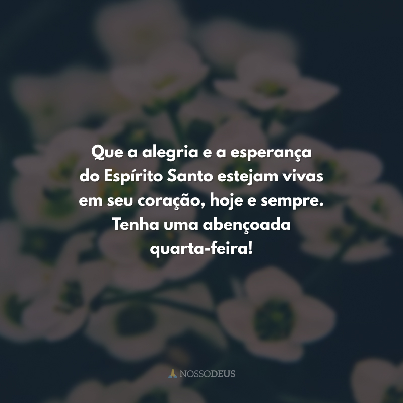 Que a alegria e a esperança do Espírito Santo estejam vivas em seu coração, hoje e sempre. Tenha uma abençoada quarta-feira!