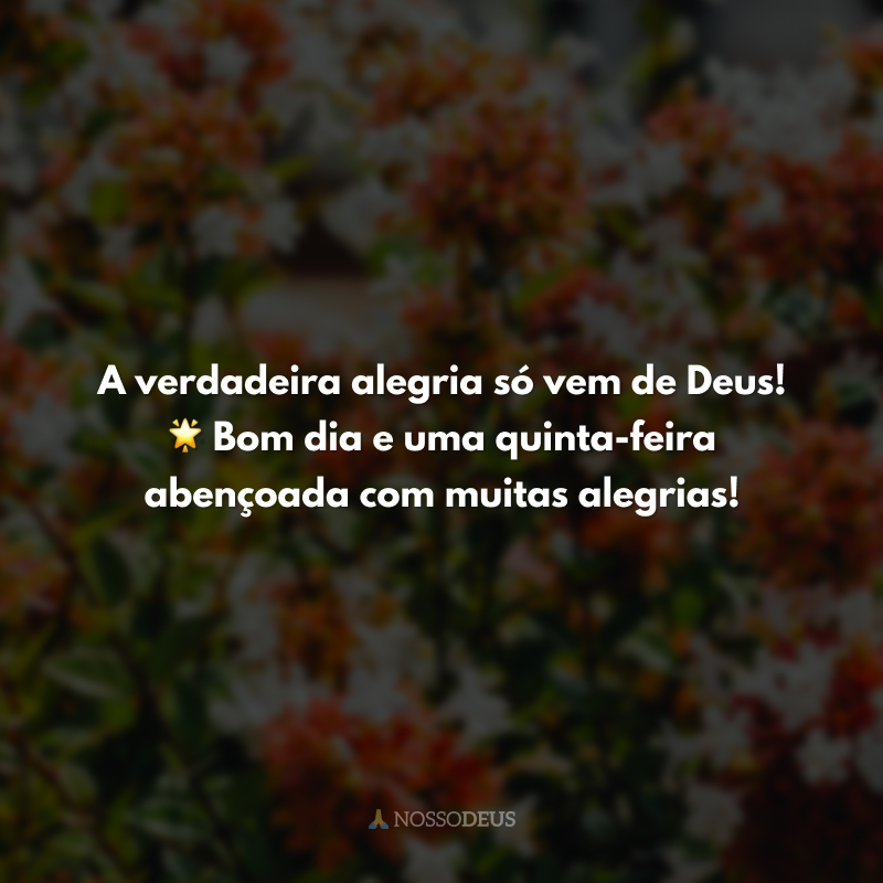 A verdadeira alegria só vem de Deus! 🌟 Bom dia e uma quinta-feira abençoada com muitas alegrias!