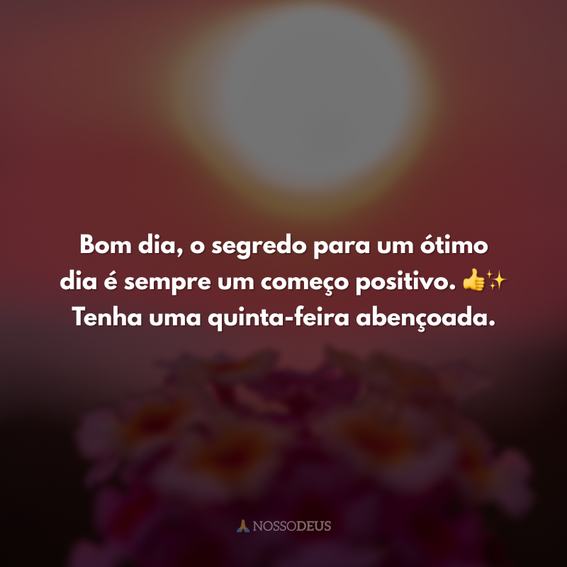 Bom dia, o segredo para um ótimo dia é sempre um começo positivo. 👍✨ Tenha uma quinta-feira abençoada.