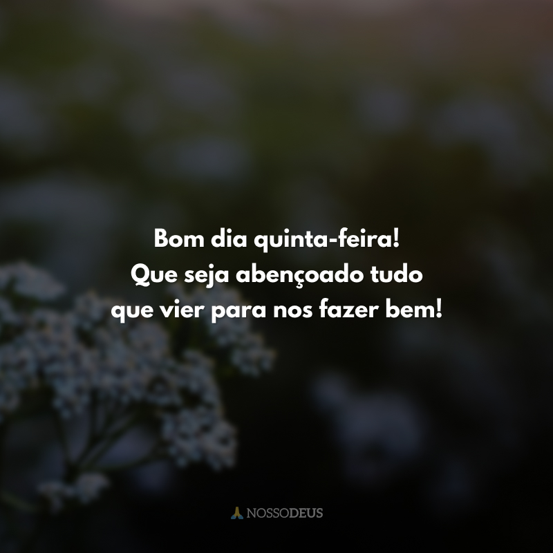 Bom dia quinta-feira! Que seja abençoado tudo que vier para nos fazer bem!