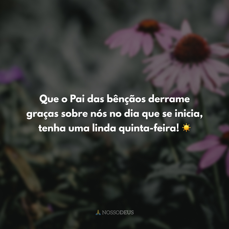 Que o Pai das bênçãos derrame graças sobre nós no dia que se inicia, tenha uma linda quinta-feira! ☀