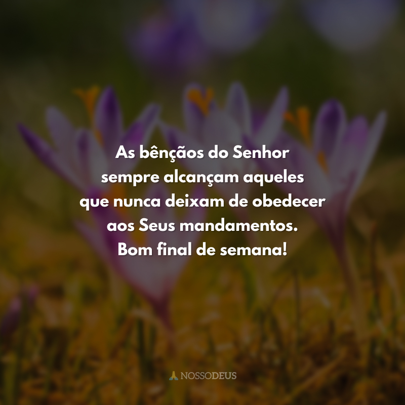 As bênçãos do Senhor sempre alcançam aqueles que nunca deixam de obedecer aos Seus mandamentos. Bom final de semana!