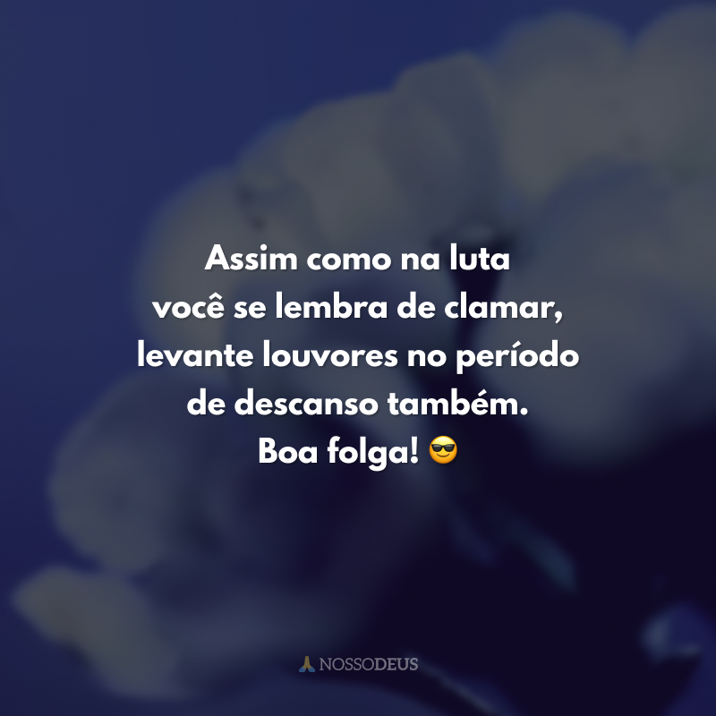 Assim como na luta você se lembra de clamar, levante louvores no período de descanso também. Boa folga! 😎