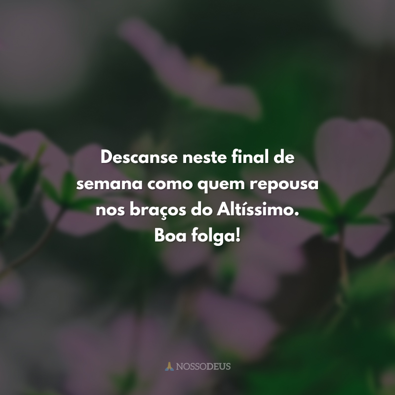 Descanse neste final de semana como quem repousa nos braços do Altíssimo. Boa folga!