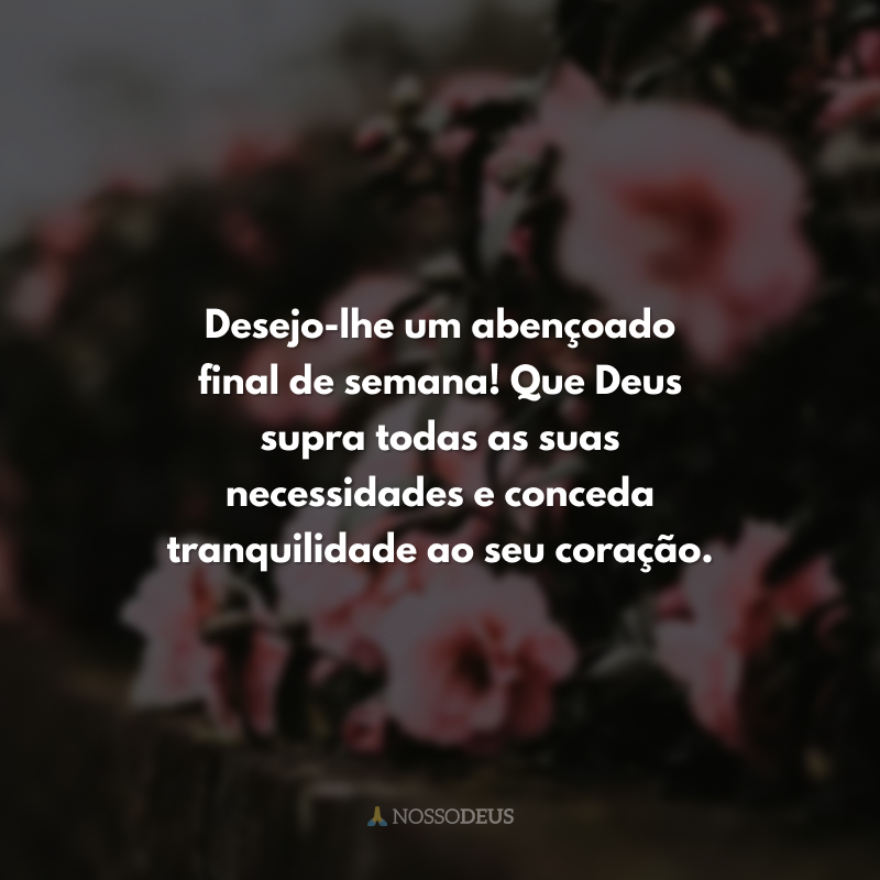 Desejo-lhe um abençoado final de semana! Que Deus supra todas as suas necessidades e conceda tranquilidade ao seu coração.