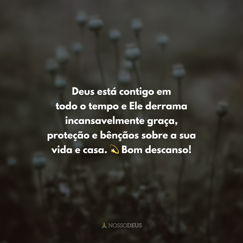 Deus está contigo em todo o tempo e Ele derrama incansavelmente graça, proteção e bênçãos sobre a sua vida e casa. 💫 Bom descanso!