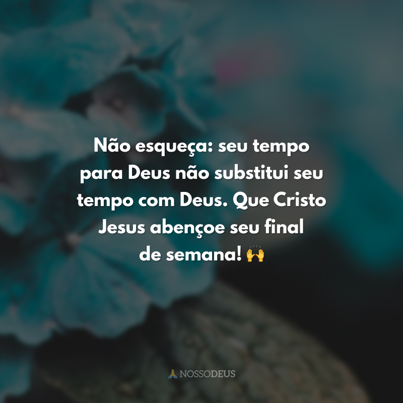 Não esqueça: seu tempo para Deus não substitui seu tempo com Deus. Que Cristo Jesus abençoe seu final de semana! 🙌