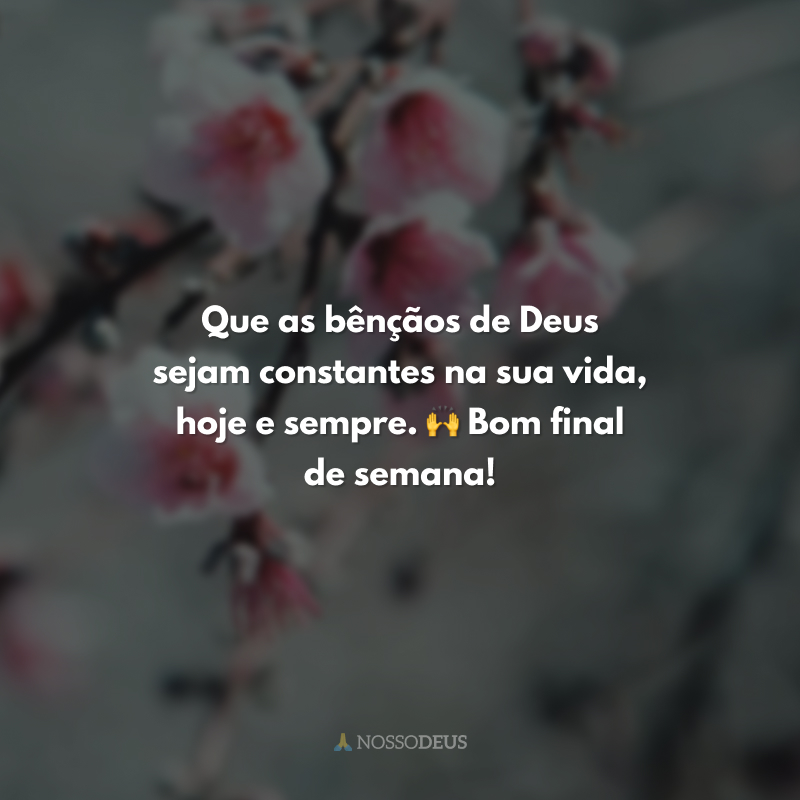 Que as bênçãos de Deus sejam constantes na sua vida, hoje e sempre. 🙌 Bom final de semana!