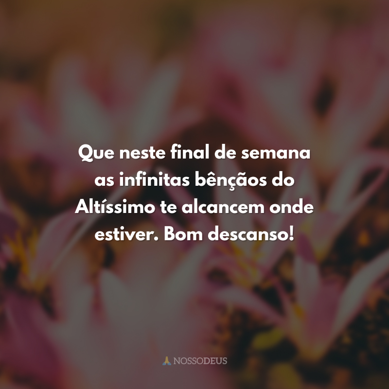 Que neste final de semana as infinitas bênçãos do Altíssimo te alcancem onde estiver. Bom descanso!