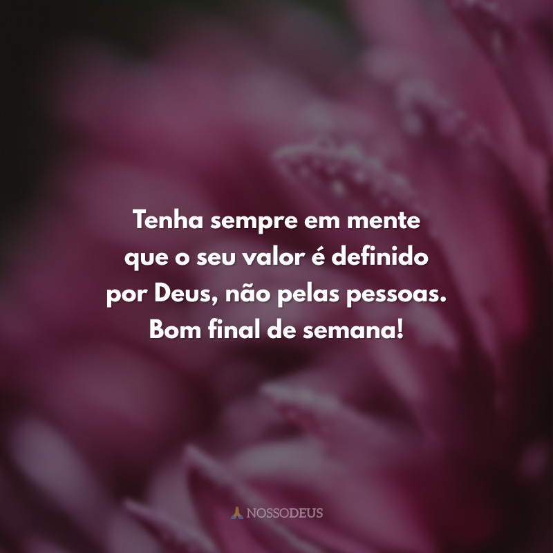 Tenha sempre em mente que o seu valor é definido por Deus, não pelas pessoas. Bom final de semana!