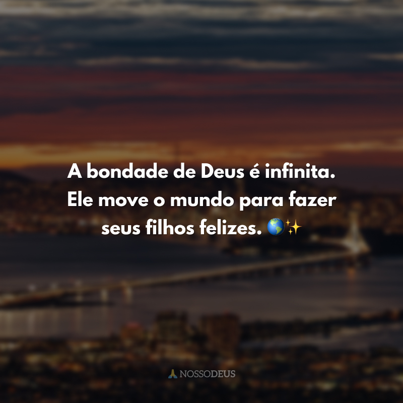 A bondade de Deus é infinita. Ele move o mundo para fazer seus filhos felizes. 🌎✨