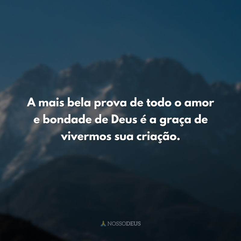 A mais bela prova de todo o amor e bondade de Deus é a graça de vivermos sua criação.
