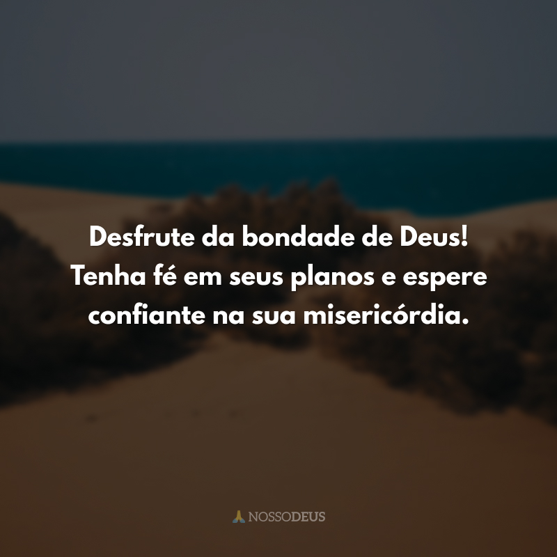 Desfrute da bondade de Deus! Tenha fé em seus planos e espere confiante na sua misericórdia.