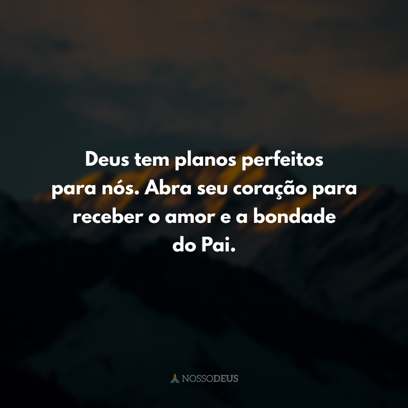 Deus tem planos perfeitos para nós. Abra seu coração para receber o amor e a bondade do Pai.