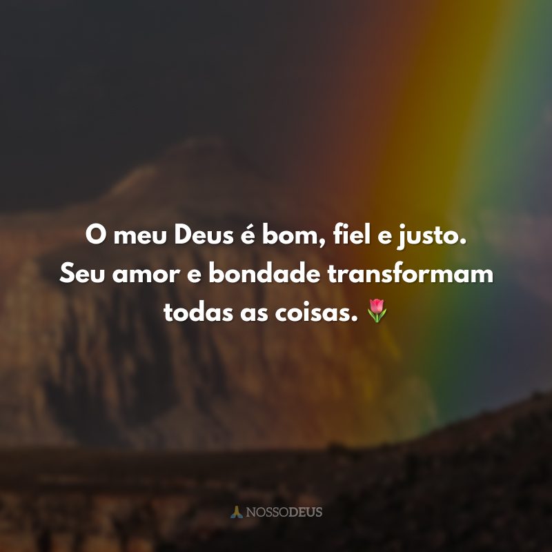 O meu Deus é bom, fiel e justo. Seu amor e bondade transformam todas as coisas. 🌷